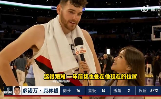10月28日消息,10月28日结束的NBA常规赛中,开拓者以122-108战胜湖人。本场比赛,中国中锋杨瀚森替补出场表现不佳,3中0靠罚球拿到1分。赛后,队友克林根采访时给了杨瀚森建议。